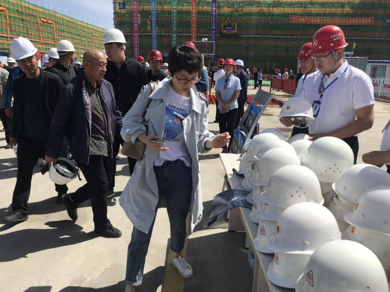 △技術(shù)負(fù)責(zé)劉志強(qiáng)為各界領(lǐng)導(dǎo)發(fā)放安全帽