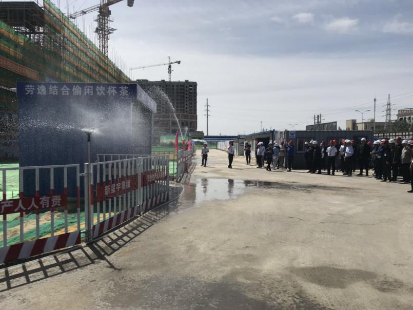 △觀摩團(tuán)參觀現(xiàn)場(chǎng)噴淋降塵設(shè)備